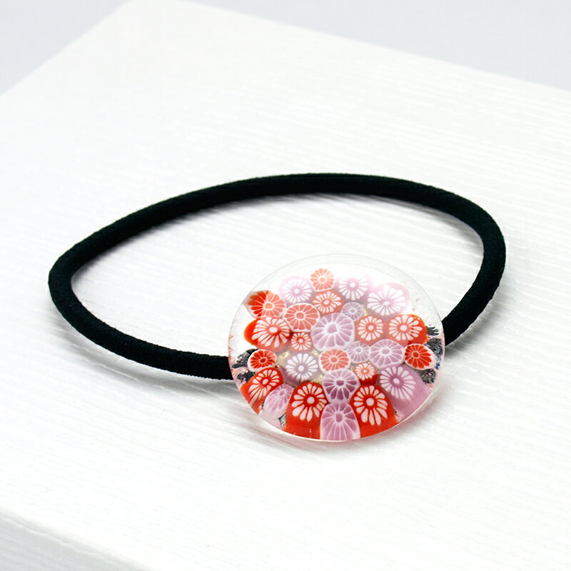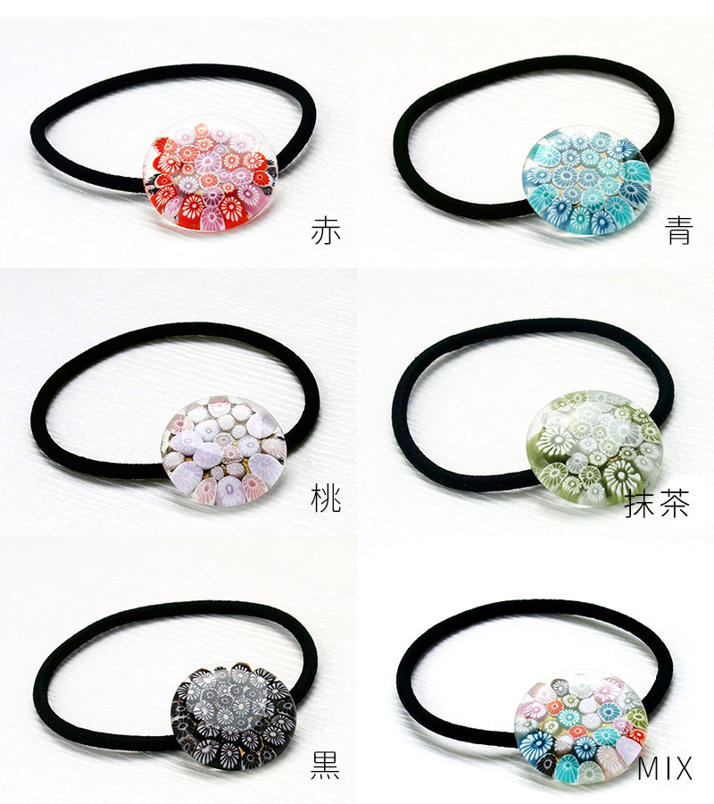 \max50%off!!クーポン+送料無料/ 【お得な2個セット】Japanミルフィオリヘアゴム01 -新菊花- たくさんの小さな菊の花を敷きつめたガラス細工、ミルフィオリのヘアゴムです。