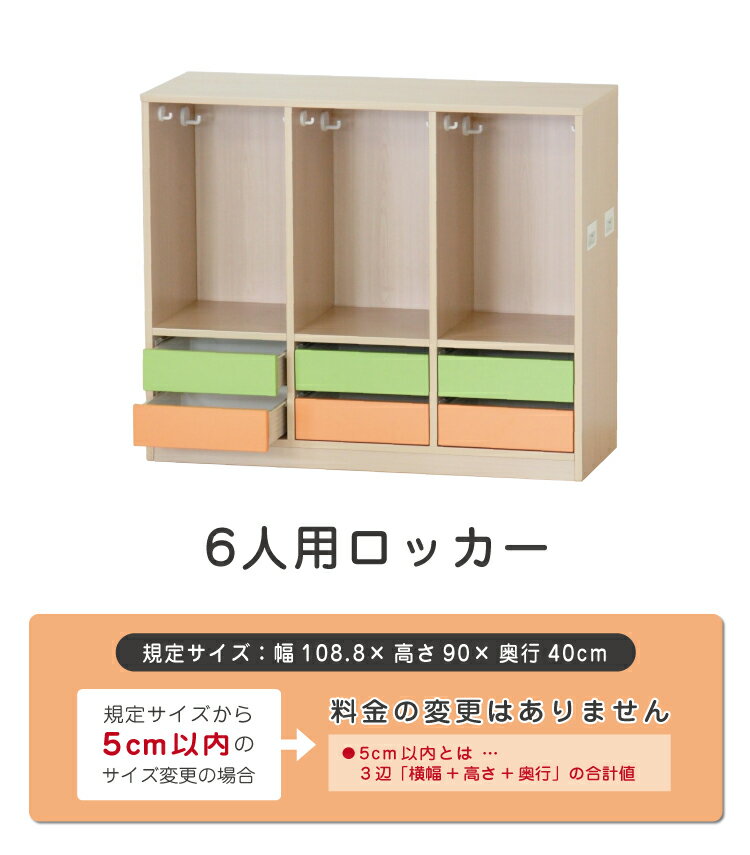 商品概要 商品名 6人用ロッカー(引出し付) サイズ 【規定サイズ】 幅108.8cm×高さ90cm×奥行40cm ※規定サイズから5cm以内のサイズ変更の場合、料金の変更はありません。
