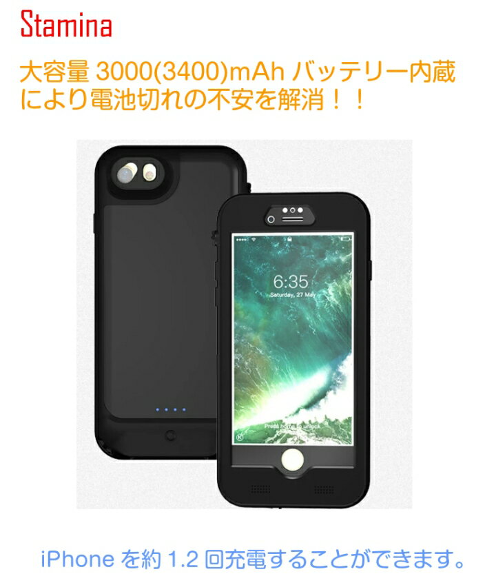 商品詳細 商品説明 iPhone7 8 X用バッテリー内蔵防水ケースです。